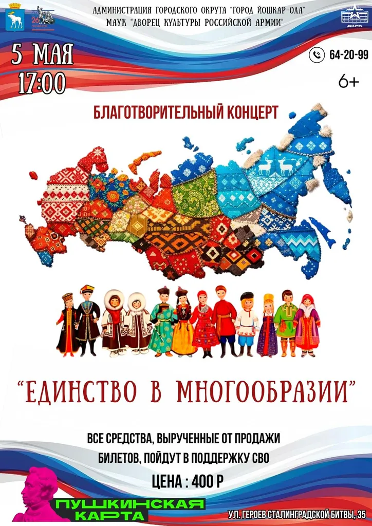 5 мая в 17:00 состоится благотворительный концерт "Единство в многообразии", собранные средства от которого будут направлены в поддержку наших земляков, находящихся в зоне СВО. Всех, кому небезразлична судьба нашей Родины и кто хочет внести свой вклад в общее дело приглашаем принять участие в этом благородном деле. Напомним, что концерт будет проходить в рамках проводимого в нашей стране Года единства народов России. В концерте примут участие творческие коллективы и отдельные исполнители нашего города. Давайте докажем, что вместе мы — сила, которую никому не сломить.